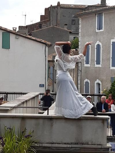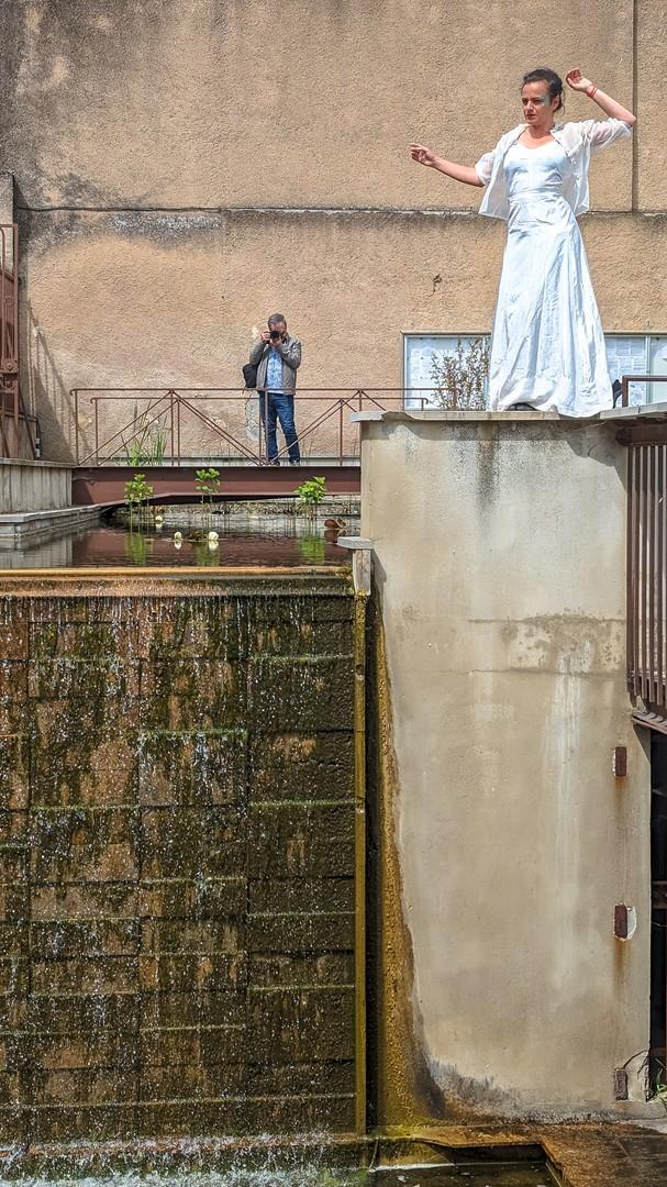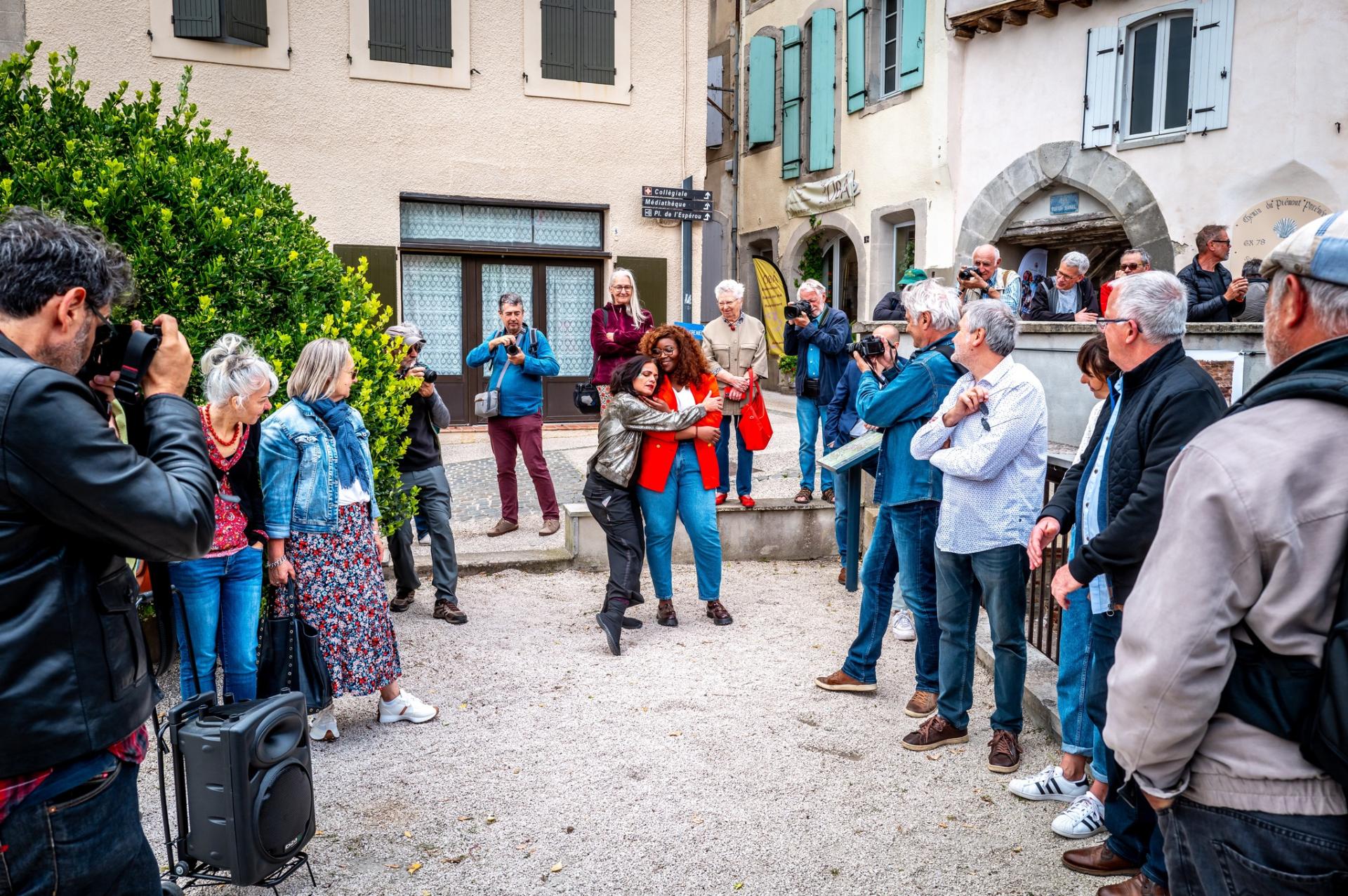 Depuis quelques années, la programmation du festival propose, tout au long de la saison estivale, des déambulations pédestres au sein des expositions accueillies dans certains villages. C’est une formidable occasion donnée aux photographes de commenter leurs travaux devant le public présent et de répondre aux questions. Mais pour l’édition 2024, la programmation a été marquée d’une innovation qui va plus loin et a été de l’avis unanime des participants particulièrement réussie : la réalisation d’une performance dansée de Magali Revest autour du mur d’eau de Montréal lors de l’ouverture du festival.